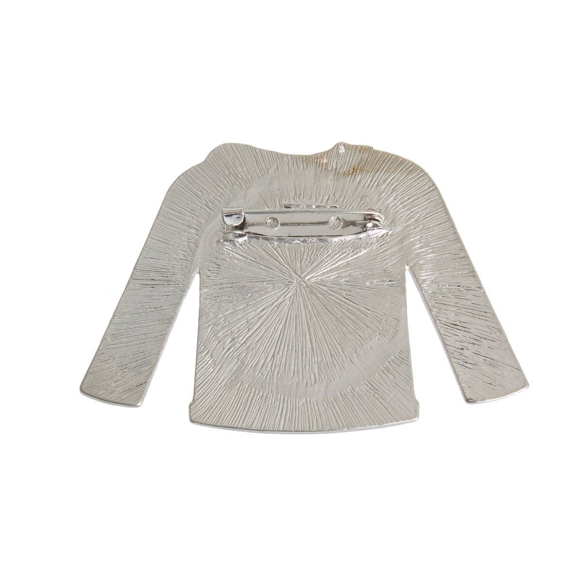Silver Metal with Pink and Green Epoxy Sweater Shaped Sorority Inspired Brooch Pin Featuring Flower, Pearls, and Greek Letter Details. Pin Closure.