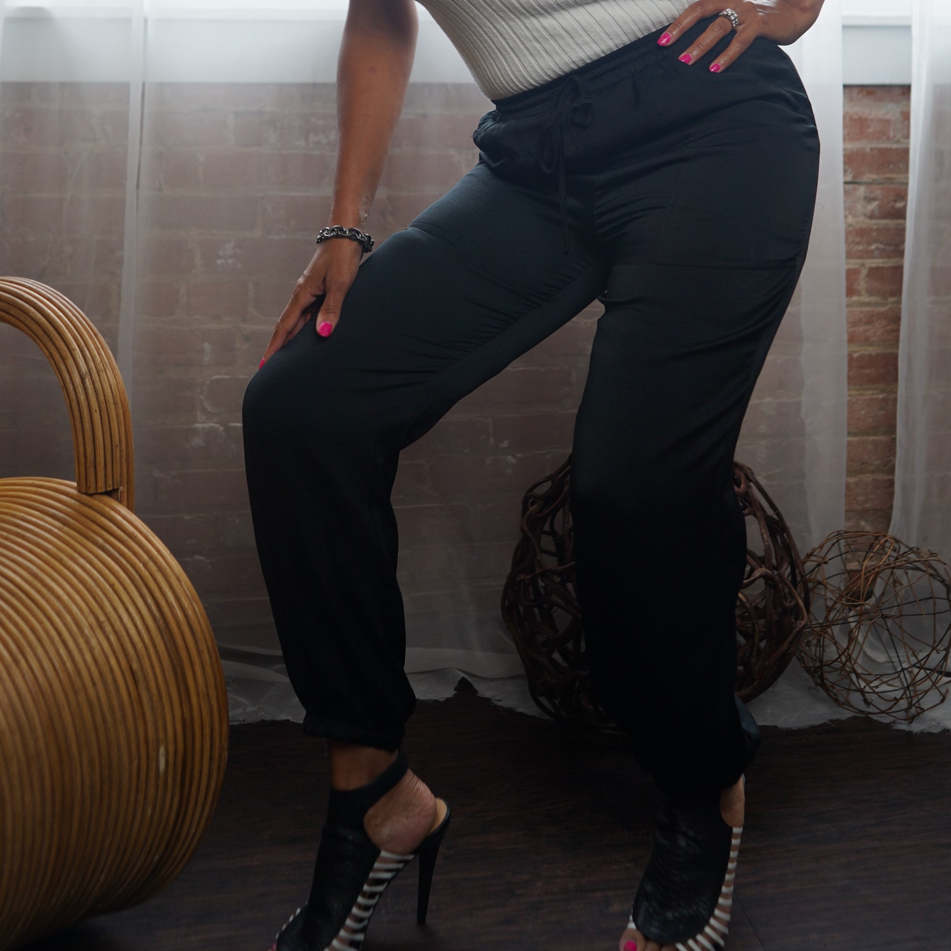 These joggers can be worn for anything almost anywhere! This jogger is made up of nice satin material that give it an elevated look. You can dress these joggers up or down and you will instantly look pull together.