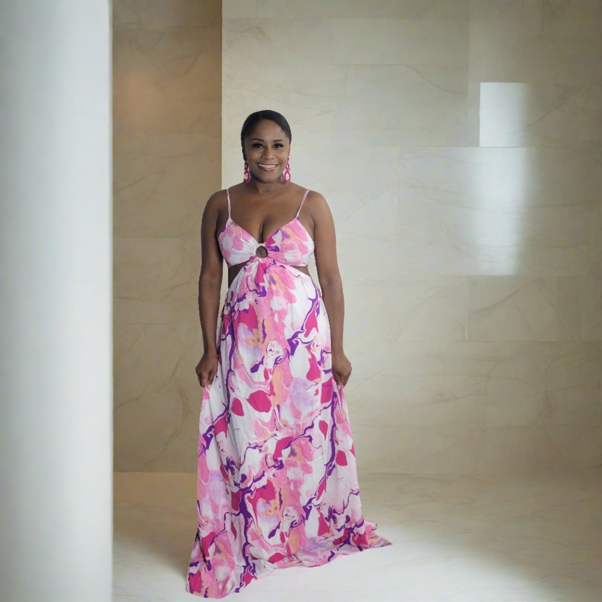 This bold and beautiful maxi dress will make you stand out in any crowd! With its tropical print and sexy keyhole and back out design, it's perfect for those looking for a little adventure. Feel fun and flirty in this must-have dress for any occasion!