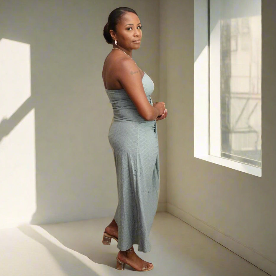 Designed with your comfort in mind, this strapless dress features a jacquard waist that provides great support while flattering your natural shape. It’s an elegant choice that helps you feel secure and confident, no matter the occasion.