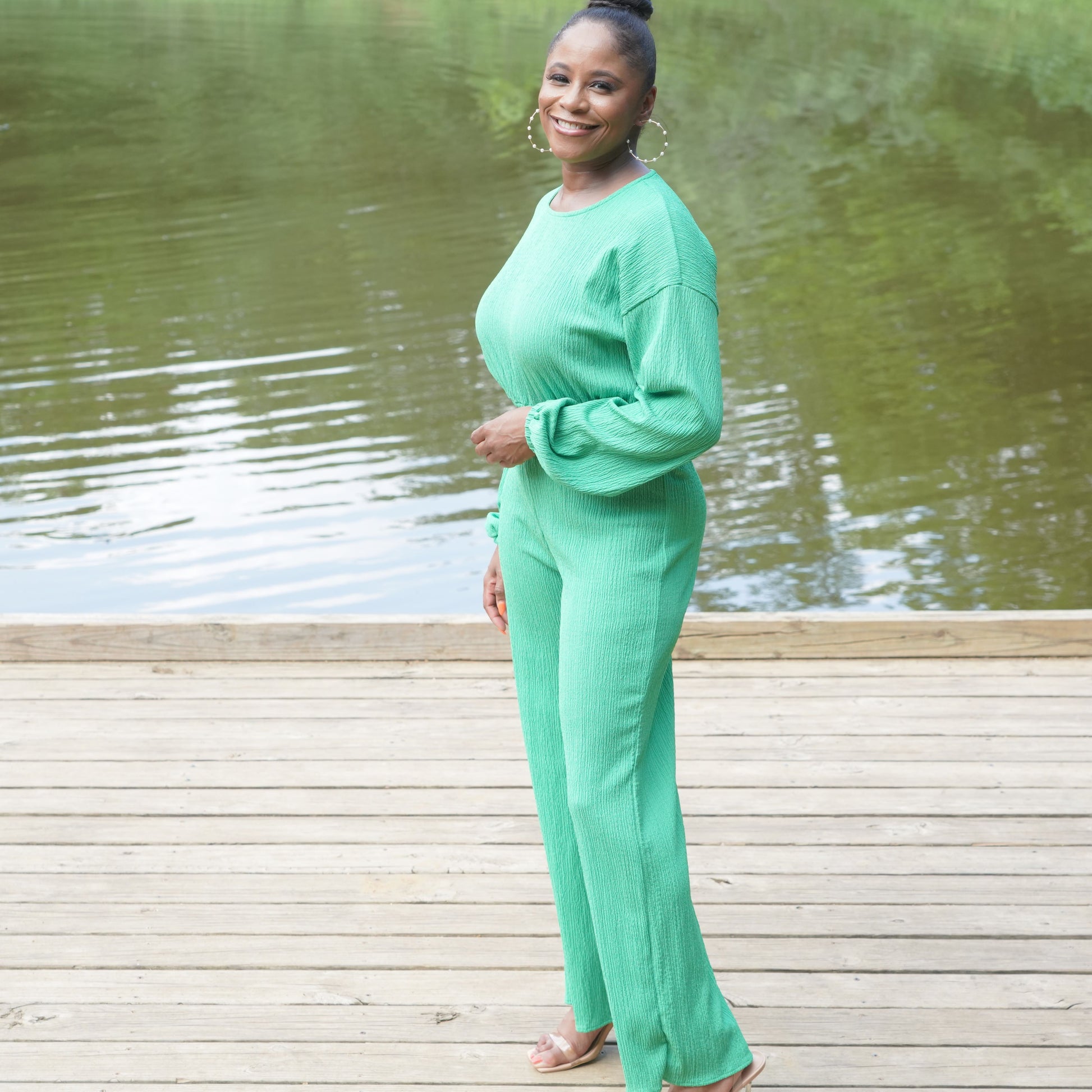 The Seeing Green Set is perfect for any stylish wardrobe. This set includes a crop top with a round neckline and wide leg pant for a modern, flattering look. Perfect for any occasion, it's a must-have that can easily be dressed up or down.