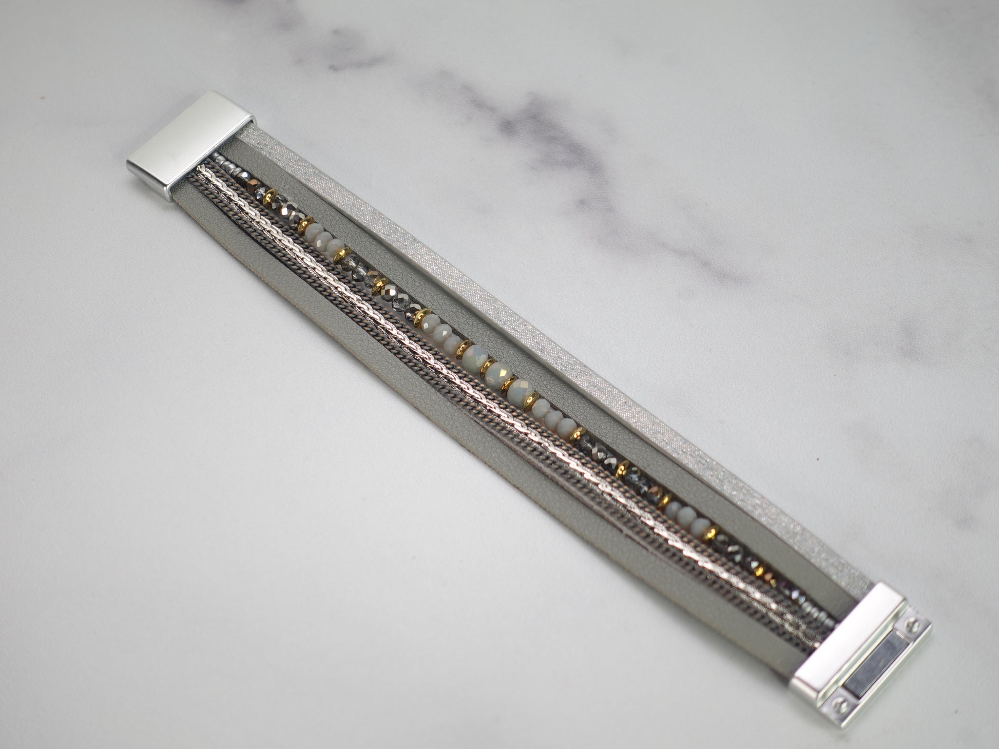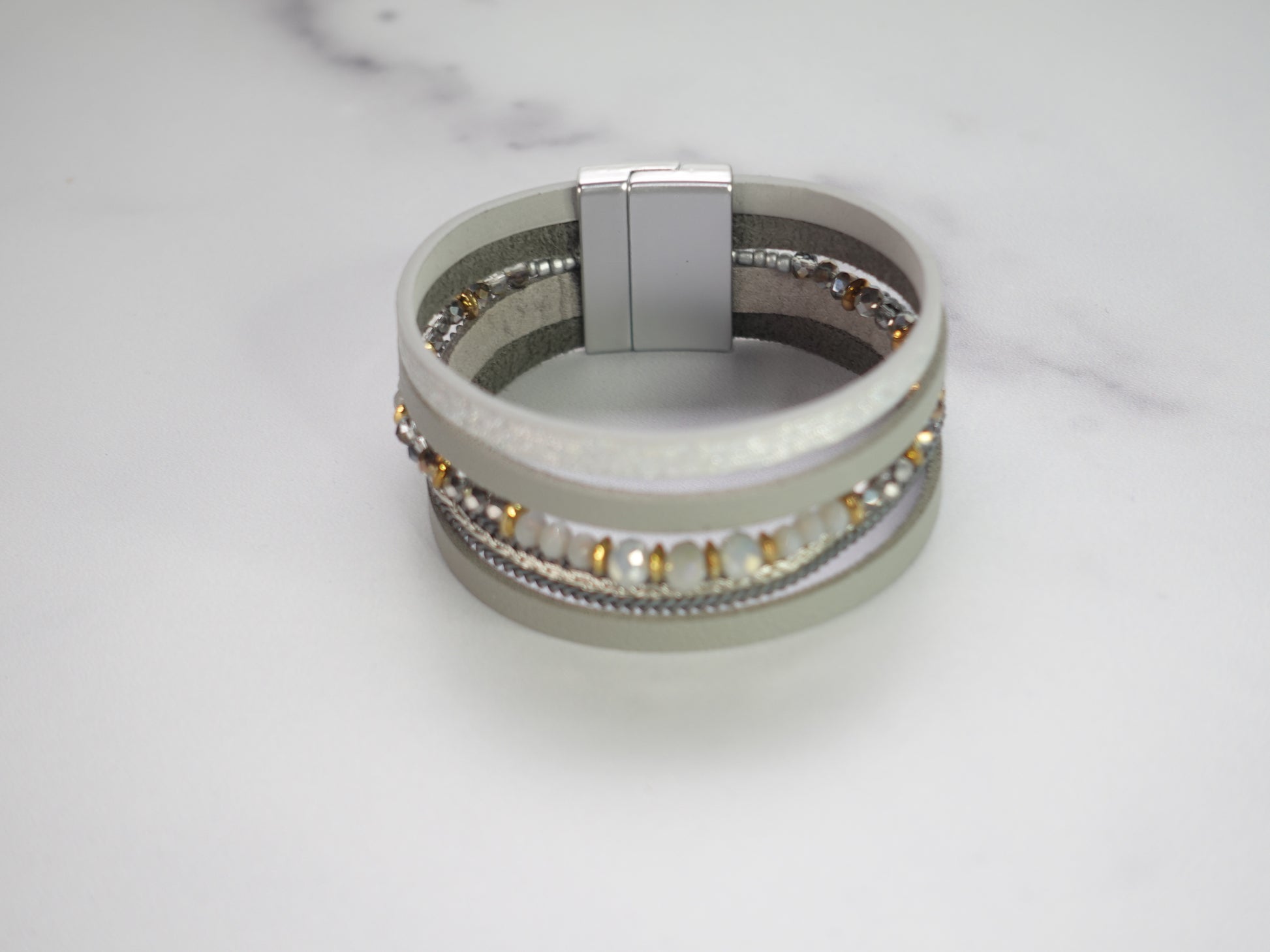 This Wrap is complete with different color leather straps and beading. Pair with a dressy blouse and jeans your ready for a night out with friends!